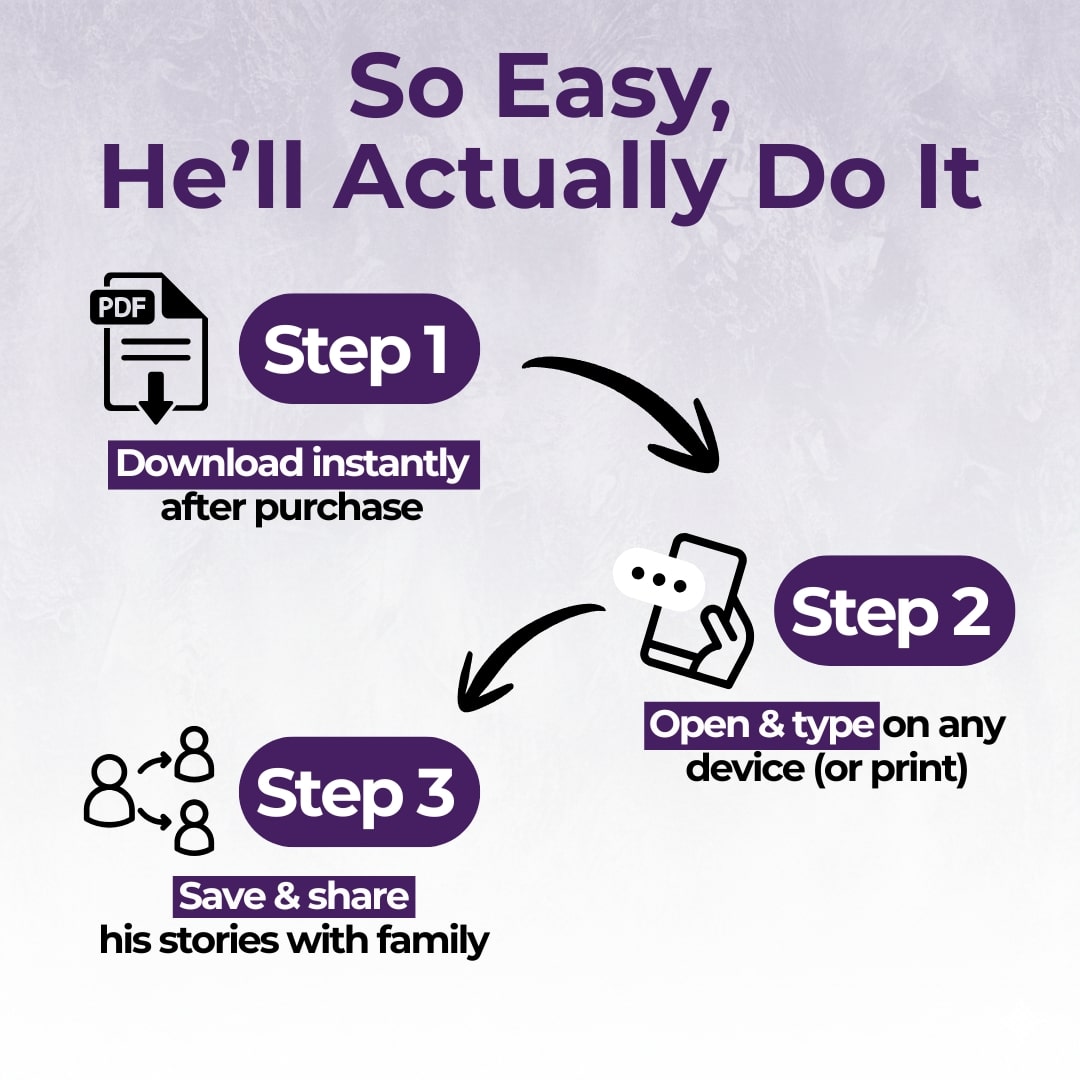 Dad was hesitant at first, but the guided questions made it easy for him to open up. Now we have stories I never knew about his childhood. It's priceless.